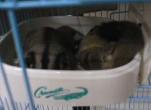 我就買了寬41.5的籠子二個250元加250元=500 co co。回到家,馬上叫老公加工(拆了底座再組合起來)結果還不錯說,高度是62公分寬還是41.5公分,(旁邊是之前睡的籠子只有一半高)以前是給牠們睡吊床,現在給牠們睡底有小小洞(可以尿尿就滴下去的微波盆)看牠們二隻還真容易習慣也在睡了,和蜜友們分享。