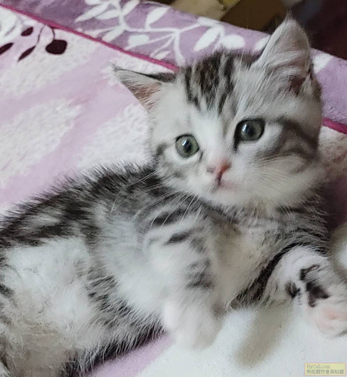 短毛為銀白美短螺旋紋小短腿,活潑好動的小女生