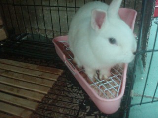拿一個洗衣藍或是隨便甚麼籃子,把兔子跟便盆關在裡面,讓他在狹小的空間只有便盆,這樣關一天,我所有的兔子都是這樣教會的,屢試不爽~