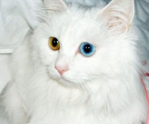 毛色洁白无杂。其眼又分鸳鸯眼(即一只黄眼,一只兰眼)或双兰眼,双黄眼三种,以鸳鸯眼最为珍贵。