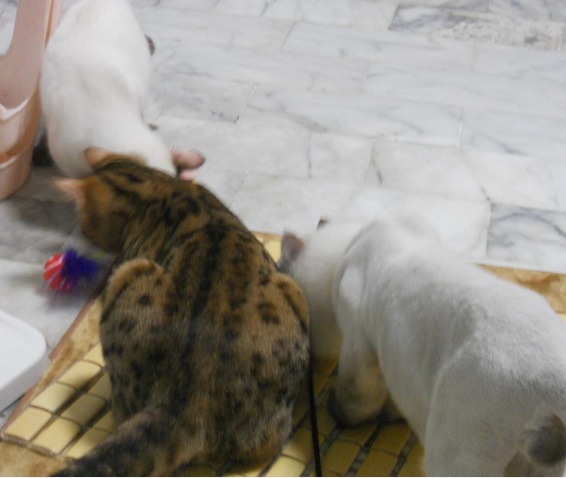 買回來三隻都很賞臉去吃了 可是艾利歐吃起司會吃到地上 一直追 一直玩 在不鳥他..[夭壽浪費 ]
