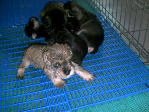 如果配種後生下的小狗第1會百分之70像母親要是幸運有一半像公雪那瑞會全身捲毛而且雪那瑞鼻子的倒v字型毛也變捲毛.