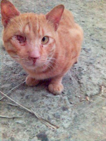 撿到一隻二眼都快瞎掉的小貓~一眼救回來~一眼凸出需摘除~