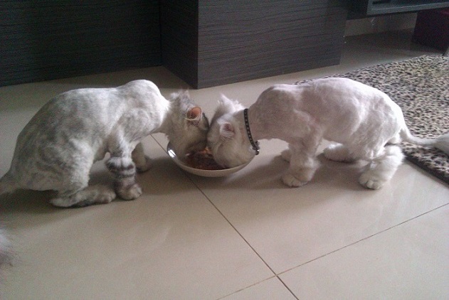 我家兩隻貓貓很會吃,早上各倒滿約500CC一桶的飼料,回到家都只剩三分之一,