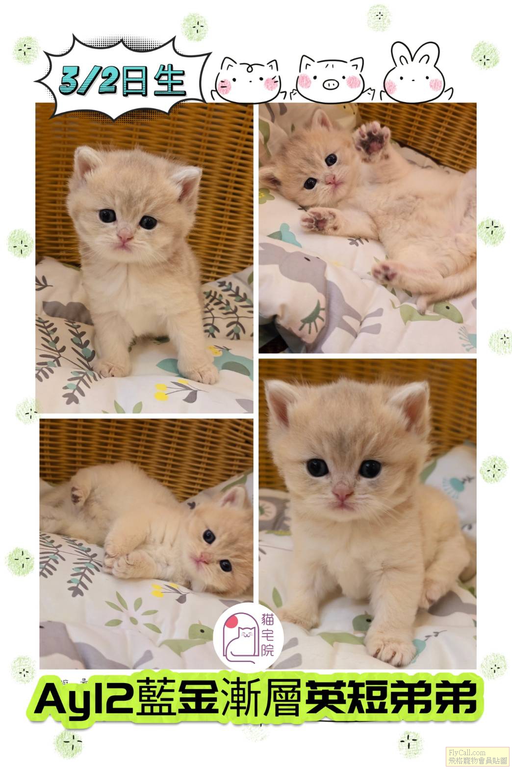 為避免爭議和保障你我權益.每隻售出的小貓.價格均含簽訂寵物買賣契約書.植入晶片.晶片過戶.第一劑預防針.驅體內外寄生蟲.獸醫開立基本健檢書.