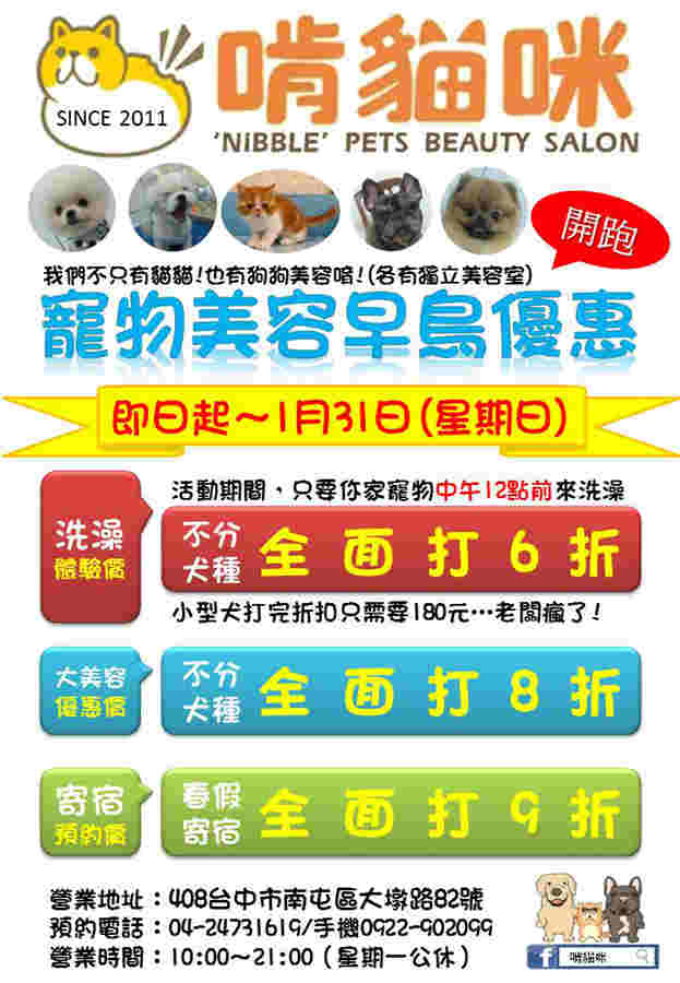 » 台中~啃貓咪犬貓美容早鳥大優待