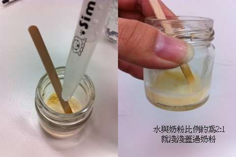 3.水與奶粉比例約2:1(淺淺蓋過奶粉)