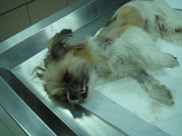 牠被狗主人丟在路邊5天,牠都沒有離開過,一直等著牠的主人回來,是我們把牠抱去醫院檢查,