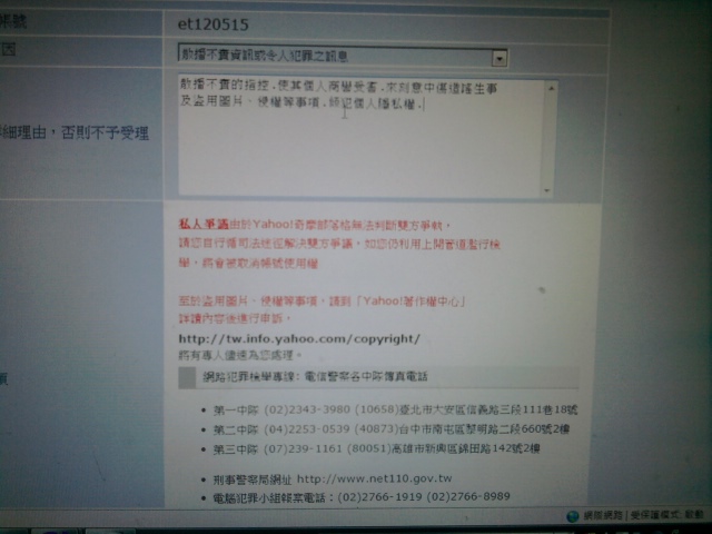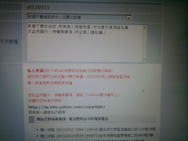 原文由 黑道企鵝 於 2011-10-27 23:12 發表 先去報案 拿三聯單 PO上來 管理員看了 就會給你資料了!!