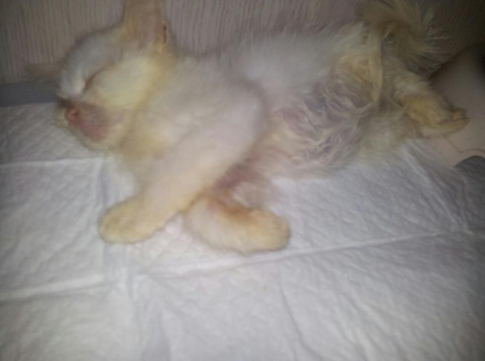 7月10日拿到,照理說是三個月的身形,看起來完全是一個月,並且異常瘦弱,一抓起來全身只有皮骨,身體軟癱.