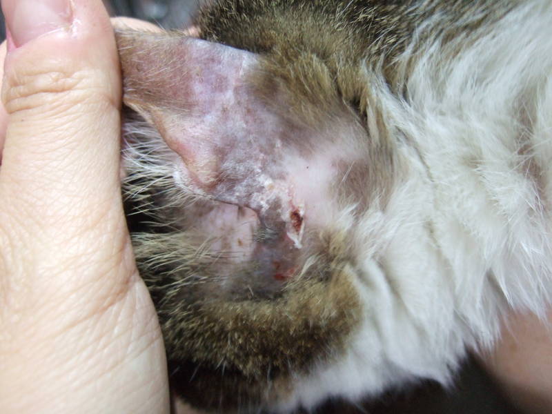 照片四.小花四犬齒全斷 照片五.小花耳禿毛且有結痂傷口