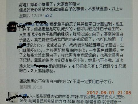 並對台灣飛格寵物論壇有關白子安哥拉必須結紮一事
