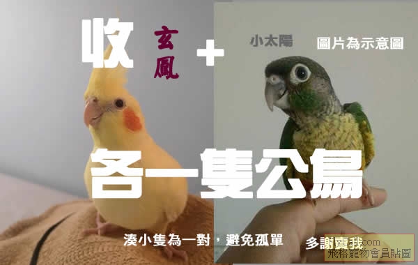 買小太陽及玄鳳各一隻,需要公鳥(全部完成)