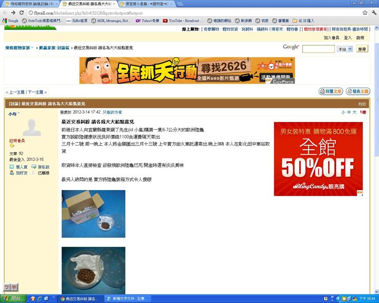 話說最近又賣死龜給別人是吧 http://flycall.com/bbs/redirect.php?tid=632126&goto=lastpost#lastpost