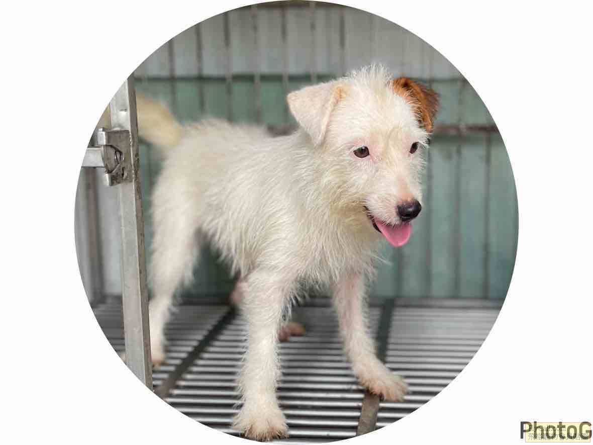 特殊色全白1耳黃傑克羅素母1.5歲還沒生過