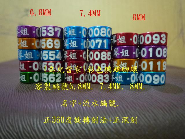 [鳥用品/飼料] 最新2/7{鳥兒當家}彩色鸚鵡腳環.鳥友客製編號成品實圖