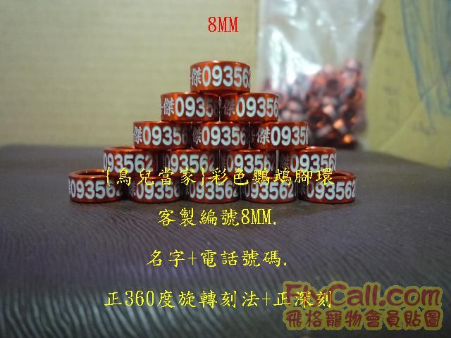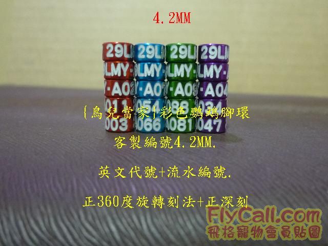[鳥用品/飼料] 最新2/7{鳥兒當家}彩色鸚鵡腳環.鳥友客製編號成品實圖