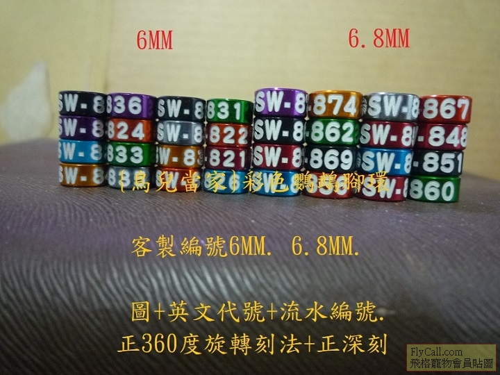 [鳥用品/飼料] 最新2/7{鳥兒當家}彩色鸚鵡腳環.鳥友客製編號成品實圖