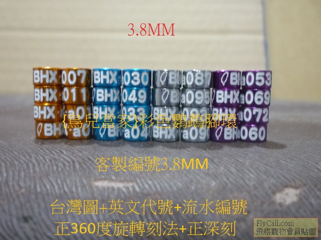 [鳥用品/飼料] 最新2/7{鳥兒當家}彩色鸚鵡腳環.鳥友客製編號成品實圖