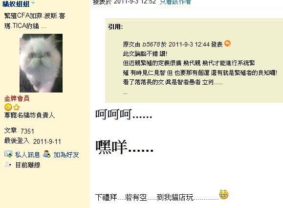 原文由 喵喵叫的魚 於 2011-9-12 23:10 發表 抱歉...喵要出門前不小心看到這個.... http://flycall.com/bbs/viewthread.php?tid=598109&extra=page%3D1&page=15 大家看看那版的145樓....阿喵阿狗姐姐又在自掌嘴啦...明明人家牛大發文是讚同墨者大大的論點...她 ...