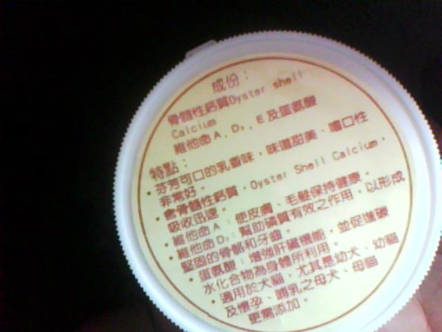 寵物醫生說的那一種狗貓的鈣千萬不要給小蜜吃...小蜜不能吃有含磷的鈣..我之前有有買還剩下很多~就去買國外小蜜專吃的鈣粉+維他命100g可以吃很久!