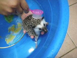 因為怕他不會用飲水器喝水(剛剛教他一下,他會啃那根鐵管)