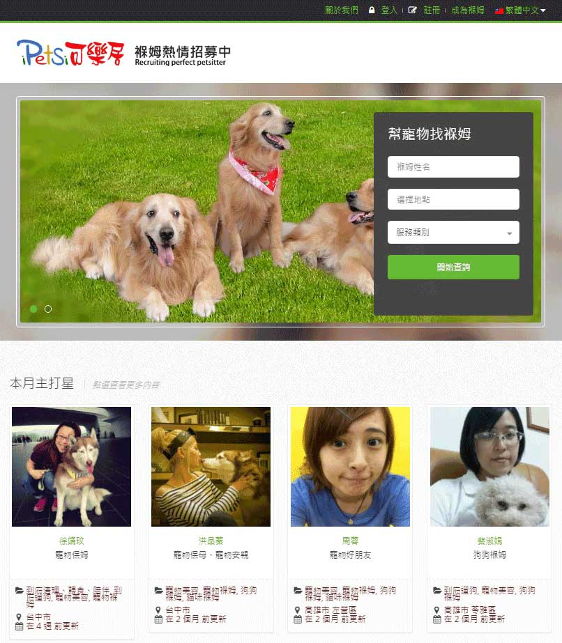 [網站] 專為寵物打造的雙語分享平台-幫寵拔貓麻們找褓姆
