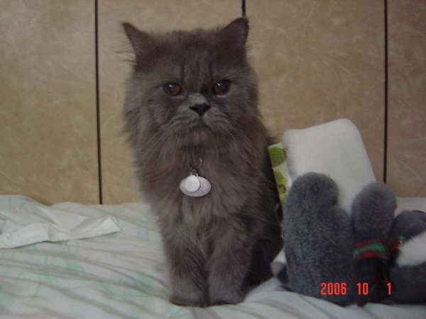 重點是我有給它戴頭套..為了防止貓舔毛的習慣會把黴菌舔到擴散..或是把藥吃進去..所以我友幫它戴..剛開始不習慣.2天之後就習慣了~