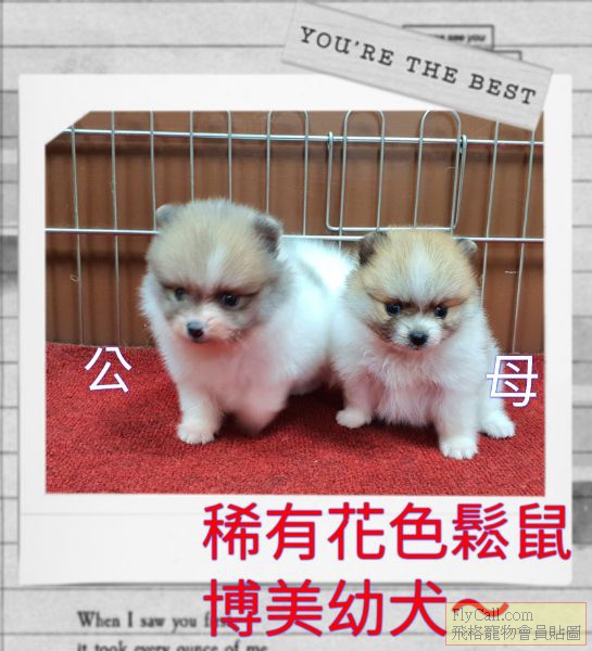 自家培育稀有花色鬆鼠博美兄妹倆~111.10.25照
