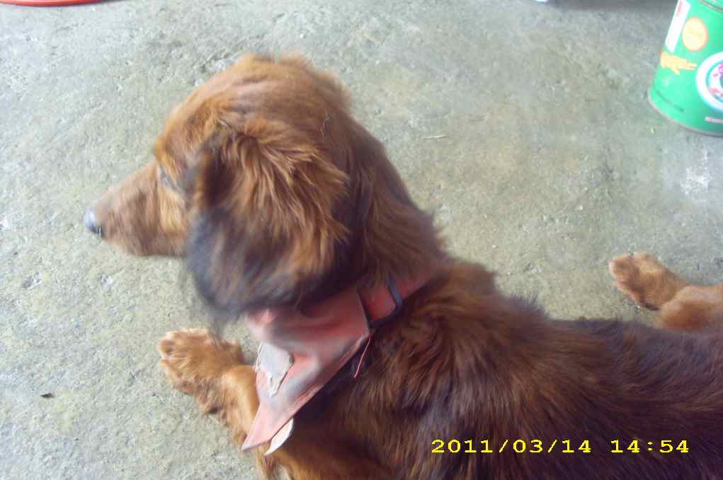 牠是一隻公的長毛臘腸.年齡有8歲以上.嘴上都長了許多白毛了.