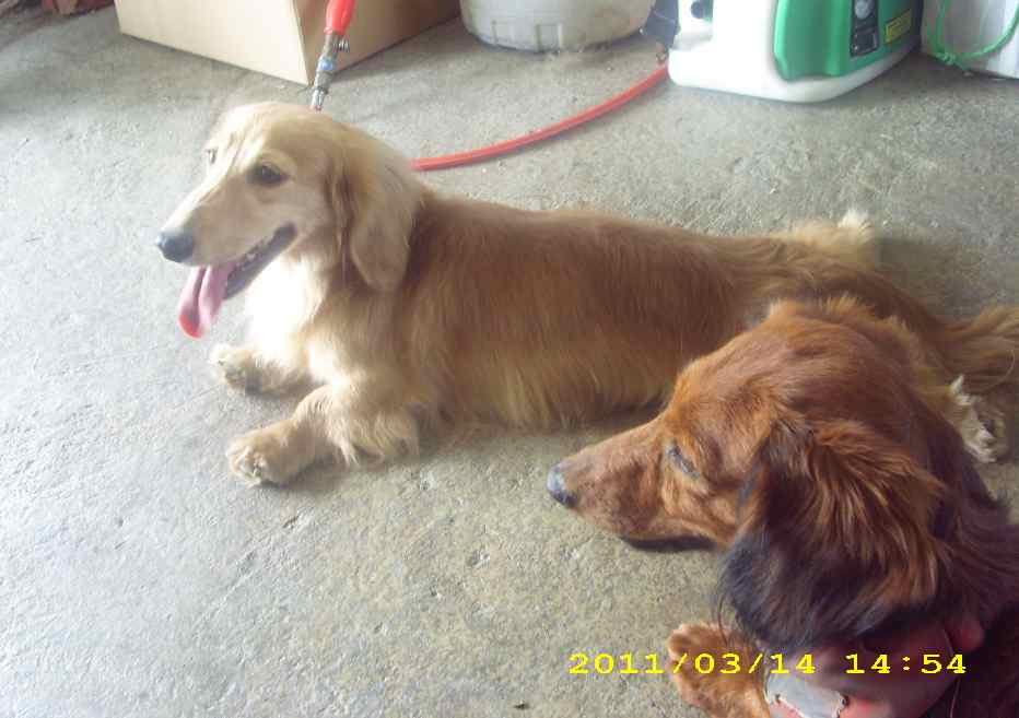 而且從不亂咬東西.而同樣是公長毛臘腸的DORU從小就開始敎卻總是耍賴混過去.