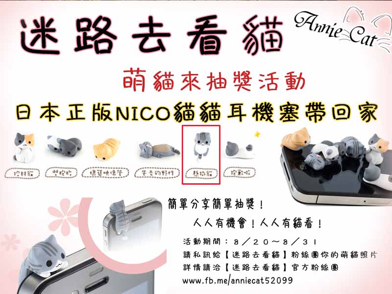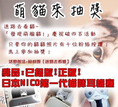 » 【超好抽】~簡單分享貓萌照,馬上抽日本NICO貓貓耳機塞