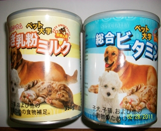 所以我會泡寵物奶粉,去餵小貓,我是泡 寵物大學的 高鈣羊奶粉 +綜合維他命