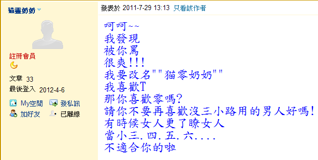 » 已婚男岳宗新(猫靈奶奶)你真噁心!!!!